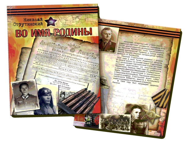 «Во имя Родины» — уникальный сборник документальных повестей о событиях Великой Отечественной войны. «Во имя Родины» — рассказ о расследовании обстоятельств гибели легендарного разведчика Николая Кузнецова. «На берегах Горыни и Случи» — повесть о судьбе партизанской семьи Струтинских. «Сын политкаторжанина» — повесть о героях-подпольщиках. Она датирована 1988 годом и оказалась невостребованной после развала СССР. Чтобы обрести жизнь, рукопись книги прошла по маршруту Черкассы — Киев — Москва — Екатеринбург. Книга адресована широкому кругу читателей.
