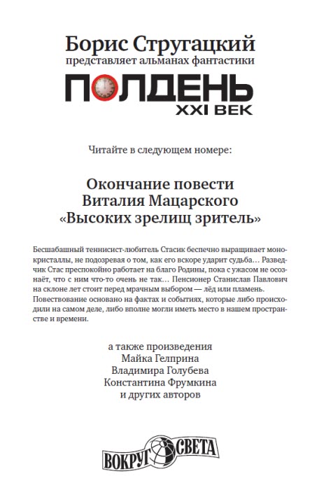 В номер включены фантастические произведения: «Высоких зрелищ зритель» Виталия Мацарского, «Все сначала» Дмитрия Юдина, «Кремлевский экзорцист» Глеба Корина, «Смерть на шестерых» Майка Гелприна, «Прах тебя побери!» Владимира Венгловского, «Крыса» Владимира Голубева, «На игре» Аарона Кеннета МакДауэлла, «То, что имеет начало…» Андрея Закревского.