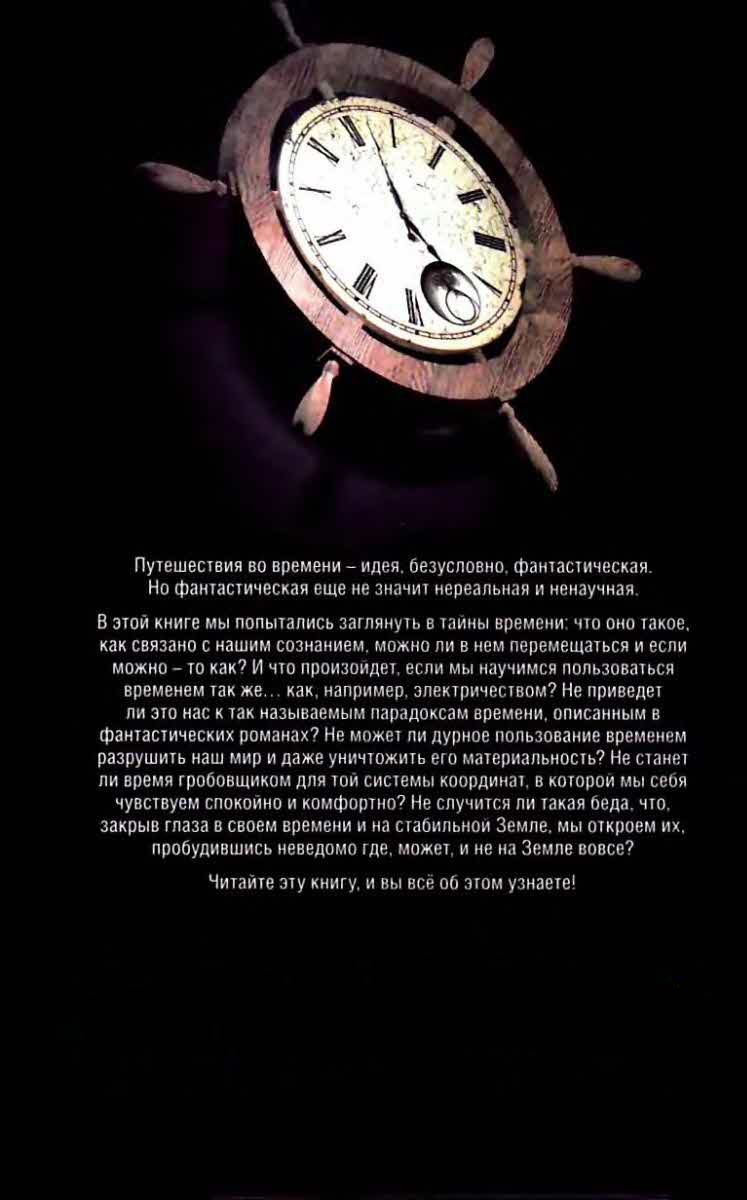Путешествия по времени — идея, безусловно, фантастическая. Но фантастическая еще не значит нереальная и ненаучная. В этой книге мы попытались заглянуть в тайны времени: что оно такое, как связано с нашим сознанием, можно ли и нем перемещаться и если можно — то как? И что произойдет, если мы научимся пользоваться временем так же… как, например, электричеством? Не приведет ли это нас к так называемым парадоксам времени, описанным в фантастических романах? Не может ли дурное пользование временем разрушить наш мир и даже уничтожить его материальность? Не станет ли время гробовщиком для той системы координат, в которой мы себя чувствуем спокойно и комфортно? Не случится ли такая беда, что,...