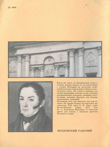 В книге рассказывается об истории создания дома, который москвичи часто называют Домом-загадкой. Он хранит память об известном архитекторе XIX века О. И. Бове. герое Отечественной войны 1812 года М. А. Дмитриеве-Мамонове. В советское время дом связан с именами артистов Большого театра.