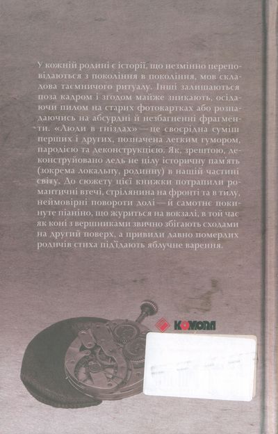 У кожній родині є історії, що незмінно переповідаються з покоління в покоління, мов складова таємничого ритуалу. Інші залишаються поза кадром і згодом майже зникають, осідаючи пилом на старих фотокартках або розпадаючись на абсурдні й незбагненні фрагменти. «Люди в гніздах» — це своєрідна суміш перших і других, позначена легким гумором, пародією та деконструкцією. Як, зрештою, деконструйовано ледь не цілу історичну пам’ять (зокрема локальну, родинну) в нашій частині світу. До сюжету цієї книжки потрапили романтичні втечі, стрілянина на фронті та в тилу, неймовірні повороти долі — й самотнє покинуте піаніно, що журиться на вокзалі, в той час як коні з вершниками звично збігають сходами на...