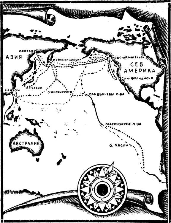 На высоком скалистом берегу в Калифорнии, неподалеку от Сан-Франциско, до сих пор стоит одинокая старая крепость, обнесенная палисадом. Внутри ее — темные от времени и непогоды бревенчатые здания и маленькая церквушка. Это форт Росс, самая южная точка бывших русских владений в Америке. Он был основан по распоряжению главного ревизора Российско-Американской торговой компании Николая Петровича Резанова сто шестьдесят лет назад. Во второй половине XVIII века на севере Тихого океана русские мореходы — первооткрыватели Алеутских островов и Аляски — продолжали прокладывать пути в Неведомое. В последней четверти века по всему северо-западному побережью Америки возникли постоянные поселения...