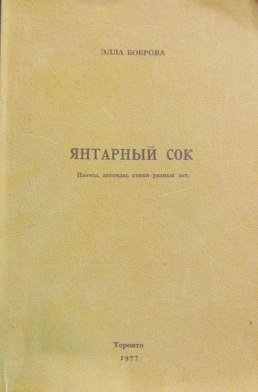 Элла Боброва (1911-2012) — поэт, прозаик, критик, мемуарист «второй волны» русской эмиграции. В 1943 г. оказалась в Германии, в лагере для перемещенных лиц. В 1950 г. перебралась в Торонто. Работала соредактором в журнале «Современник» (Торонто), репортером радио «Канада». Ее стихи публиковались в периодике русского зарубежья («Современник», «Новый журнал» и др.), а также вошли в антологию эмигрантской поэзии «Содружество» (1966). Основа данной электронной книги — второй сборник стихов, поэм и переводов Э. Бобровой — «Янтарный сок» (Торонто, 1977). Электронную публикацию дополняют стихотворения, не вошедшие в вышеупомянутое издание 1977 г.