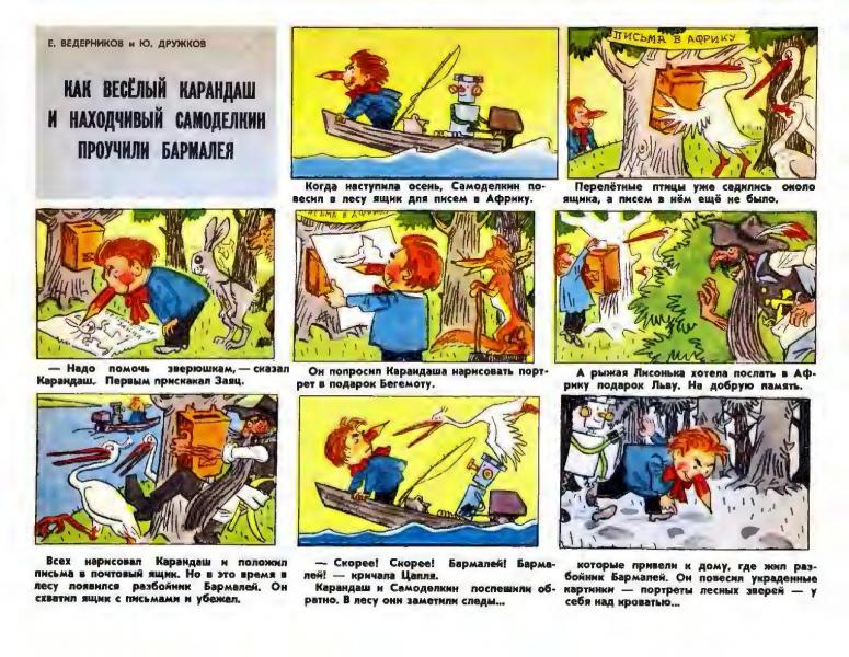 Рассказ в картинках, опубликованный в журнале «Пионер» №№ 2, 6 за 1968 г.