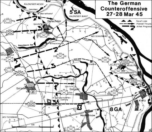 The unexpected arrival of Soviet troops at the end of January 1945 at the ancient fortress and garrison town of Küstrin came as a tremendous shock to the German High Command—the Soviets were now only 50 miles from Berlin itself. The Red Army needed the vital road and rail bridges passing through Küstrin for their forthcoming assault on the capital, but flooding and their own high command’s strategic blunders resulted in a sixty-day siege by two Soviet armies which totally destroyed the town. The delay in the Soviet advance also gave the Germans time to consolidate the defenses shielding Berlin west of the Oder River. Despite Hitler’s orders to fight on to the last bullet, the Küstrin...