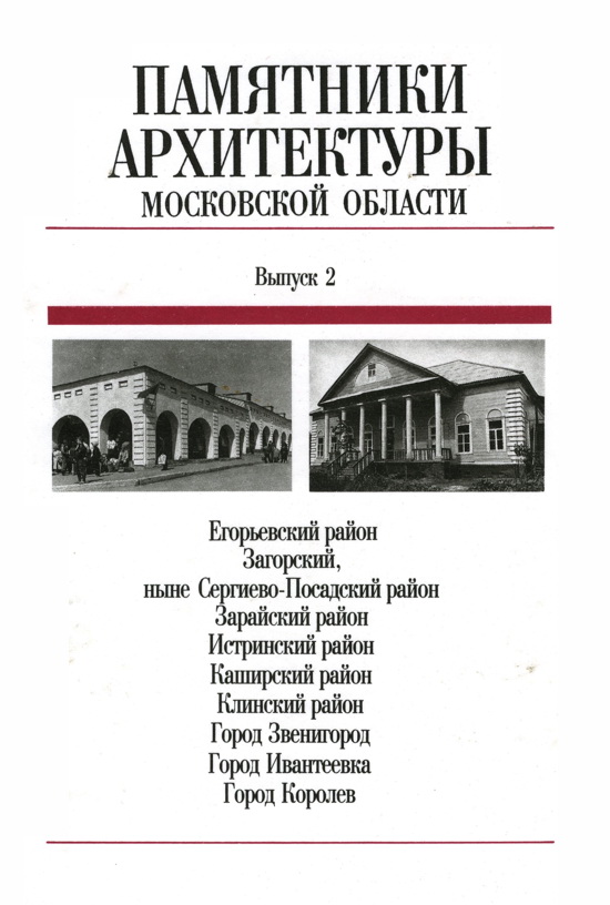 Данный выпуск является вторым в серии иллюстрированных каталогов памятников архитектуры Подмосковья. Даются описания всех охраняемых государством, а также предлагаемых к постановке на государственную охрану архитектурных сооружений Московской области. Краткая характеристика каждого памятника с указанием даты сооружения, авторства (если оно известно), архитектурно-художественных особенностей сопровождаются фотографией его общего вида и планом. Для архитекторов и искусствоведов, а также для всех, интересующихся отечественной культурой. Егорьевский район