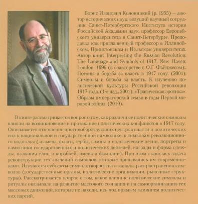 Книга ведущего научного сотрудника Санкт-Петербургского института истории, профессора Европейского университета в Санкт-Петербурге Б.И. Колоницкого посвящена политической борьбе в переломный момент истории. Автор рассматривает конфликты той эпохи не только как столкновение основных политических партий, борющихся за контроль над государственными институтами, но и как комплекс «стихийных» движений, самоорганизация которых происходила вокруг политических символов — «старых» и «новых». В центре внимания автора конфликты вокруг государственных символов, военных знамен и военно-морских флагов, государственных наград и форм одежды, названий улиц и кораблей, песен и форм обращения. В монографии...