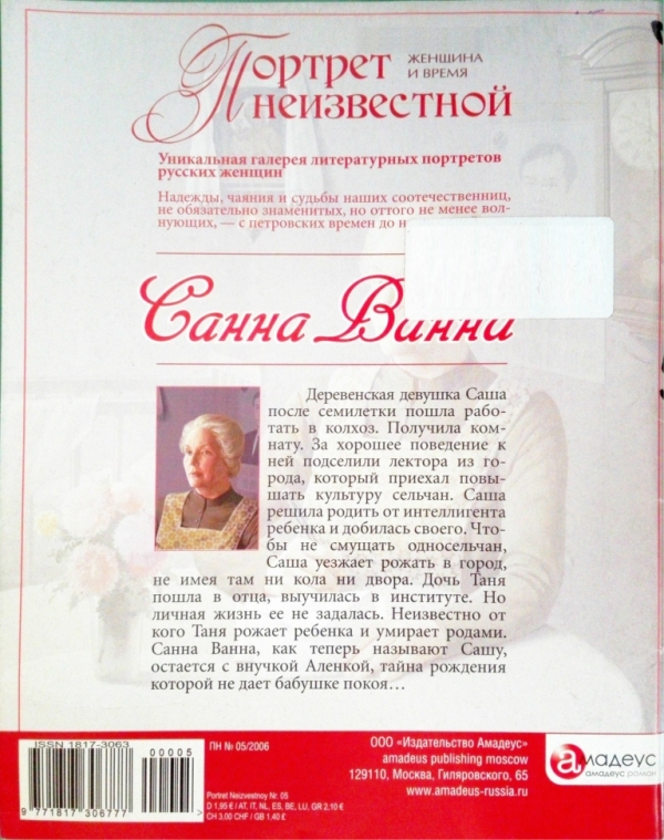 Деревенская девушка Саша после семилетки пошла работать в колхоз. Получила комнату. За хорошее поведение к ней подселили лектора из города, который приехал повышать культуру сельчан. Саша решила родить от интеллигента ребенка и добилась своего. Чтобы не смущать односельчан, Саша уезжает рожать в город, не имея там ни кола ни двора. Дочь Таня пошла в отца, выучилась в институте. Но личная жизнь ее не задалась. Неизвестно от кого Таня рожает ребенка и умирает родами. Санна Ванна, как теперь называют Сашу, остается с внучкой Аленкой, тайна рождения которой не дает бабушке покоя…