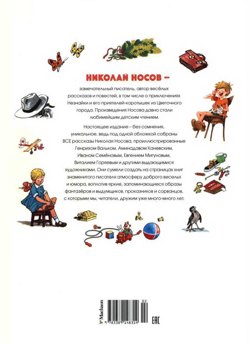 Циклы «Федя Рыбкин», «Валя и Петя», «Мишка и Коля», «Котька», «Приключения Незнайки» [collapse collapsed title=Оглавление] Иллюстрации Генриха Валька Николай Носов. Огурцы (рассказ) Николай Носов. Федина задача (рассказ) Николай Носов. Метро (рассказ) Николай Носов. Замазка (рассказ) Николай Носов. Саша (рассказ) Николай Носов. Под одной крышей (сказка) Иллюстрации Виталия Горяева Николай Носов. На горке (рассказ) Николай Носов. Ступеньки (рассказ) Николай Носов. Живая шляпа (рассказ) Николай...