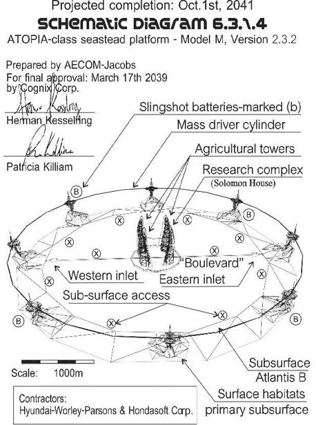 In the near future, to escape the crush and clutter of a packed and polluted Earth, the world's elite flock to Atopia, an enormous corporate-owned artificial island in the Pacific Ocean. It is there that Dr. Patricia Killiam rushes to perfect the ultimate in virtual reality: a program to save the ravaged Earth from mankind’s insatiable appetite for natural resources.