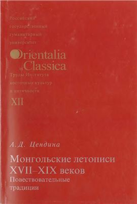 Монография посвящена анализу повествовательной структуры монгольских летописей XVII-XIX вв., литературных традиций, на которые опирались их авторы, художественных средств, которыми они пользовались. Проведено исследование стадиального развития летописей, выявлены элементы инокультурных влияний, показаны их соотношение и роль в становлении монгольской литературы. [collapse collapsed title=О г л а в л е н и е:] Глава I. Архаичный литературный тип и «номадный» субстрат 19 § 1. Родоплеменная история монголов и генеалогический принцип построения текста 19 § 2. Фольклорные сюжетно-повествовательные элементы 33 1. Цикл мотивов о хане-родоначальнике 36 2. Повествование о Чингис-хане...