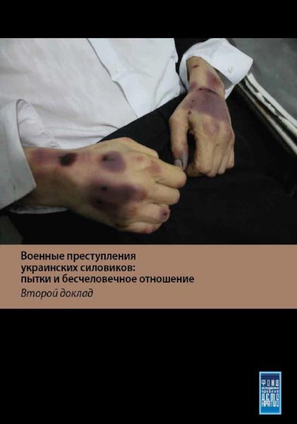 Военные преступления украинских силовиков: пытки и бесчеловечное отношение (второй доклад)» подготовлен негосударственной организацией Фонд исследования проблем демократии (директор — М. С. Григорьев) и Российским общественным советом по международному сотрудничеству и публичной дипломатии (председатель — С. А. Орджоникидзе) при поддержке Российского фонда мира (Л. Э. Слуцкий, Е. В. Сутормина), С. В. Мамедова, И. Н. Морозова, Е. Г. Тарло, Д. В. Савельева, А. В. Чепа и других членов Комитета общественной поддержки жителей Юго-Востока Украины. Полученные с момента публикации первого доклада Фондом исследования проблем демократии данные позволяют утверждать, что практика пыток и...