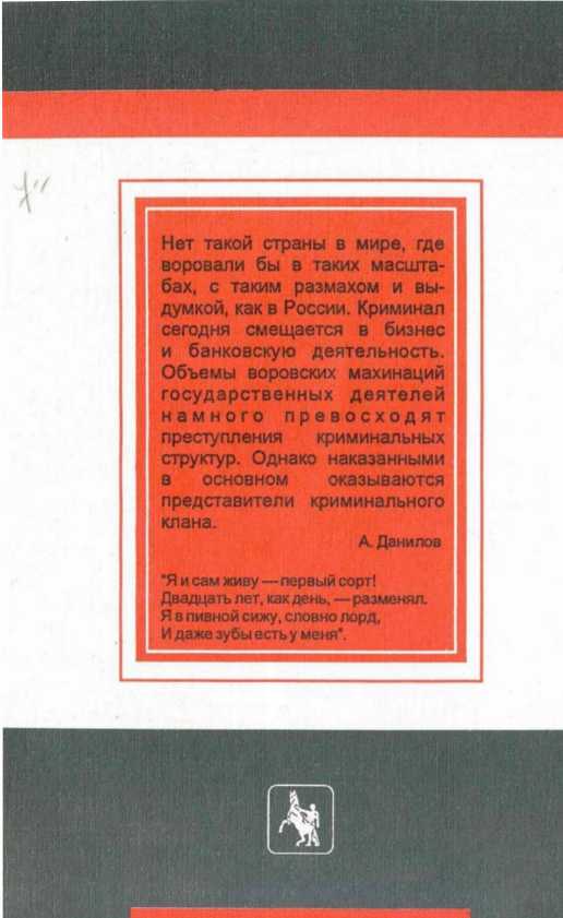 В книге анализируются ухищрения и воровские приемы жуликов и грабителей. Но не только это. Смещение криминала в сферу бизнеса, банковскую деятельность и коммерцию; воровство государственных чиновников и т. п. В результате процветает преступное сообщество, государство же медленно умирает. Автор дает информацию для того, чтобы читатель воспользовался ею и задумался над тем, что происходит вокруг. Для широкого круга читателей.