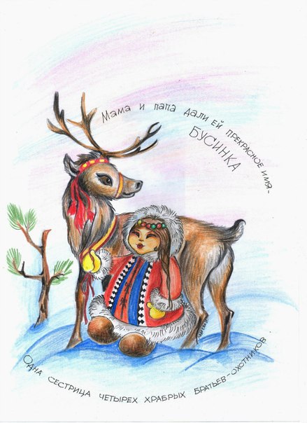 Книга познакомит юных читателей со сказками эвенков, малого народа проживающего в Восточной Сибири, на берегу сурового Охотского моря. Эвенки занимаются оленеводством, рыболовством, охотой. А ещё разводят собак, которые помогают присматривать за стадом оленей, охотиться и передвигаться на большие расстояния. Автор Галина Емельянова сделала главной героиней своих сказок девочку по имени Бусинка — смелую, отважную, любящую близких, природу родного края и верящую в то, что добро обязательно победит зло. Помогают ей в этом храбрый пёс Норче, животные и герои эвенкийского эпоса. Художник Карина Соловьева
