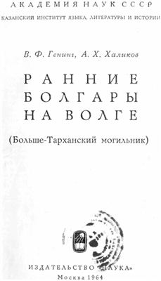 Настоящая публикация посвящена результатам исследованиям Больше-Тарханского могильника. Авторы сочли необходимым наиболее полное издание материалов этого памятника соответствующей научной систематизацией и интерпретации их, а также с привлечением данных и по другим, известным частично изученным памятникам Среднего Поволжья, связанным, по мнению авторов, с проблемой истории древних болгар. Естественно, при рассмотрении всех этих вопросов авторы не могли обойти темы, затрагивающие общую историю болгарских племен Восточной Европы, а также моменты, характеризующие отношения пришлых болгарских и местных племен на Средней Волге.