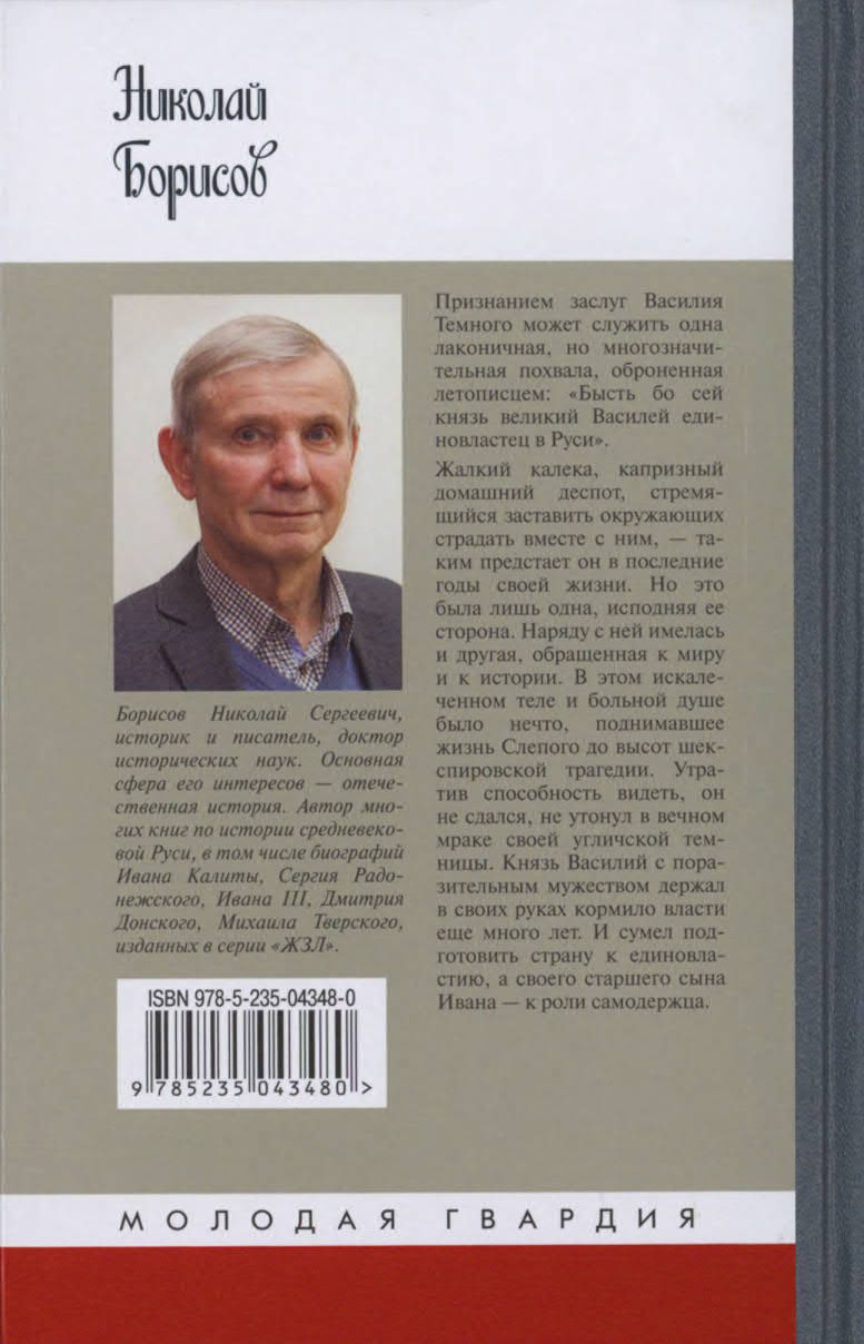 Судьба оказалась жестокой к московскому князю Василию II Васильевичу (1425—1462). В русскую историю он вошёл с прозвищем Тёмный, что означает — Слепой: подвергнутый жестокой казни своими двоюродными братьями ещё в 1446 году, он в течение шестнадцати лет правил страной будучи слепцом, калекой — и тем не менее сумел удержать в своих руках власть и даже лично водил войско в походы. Но ведь и сам Василий проявил ничуть не меньше жестокости и вероломства в ходе кровавой междоусобицы, поразившей Русь во второй четверти XV века, так что не случайно один из современников назвал его «иудой» и «душегубцем». Автор книги, доктор исторических наук, профессор Николай Сергеевич Борисов, на основе всех...