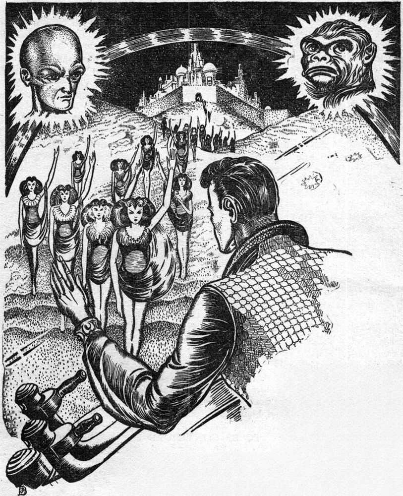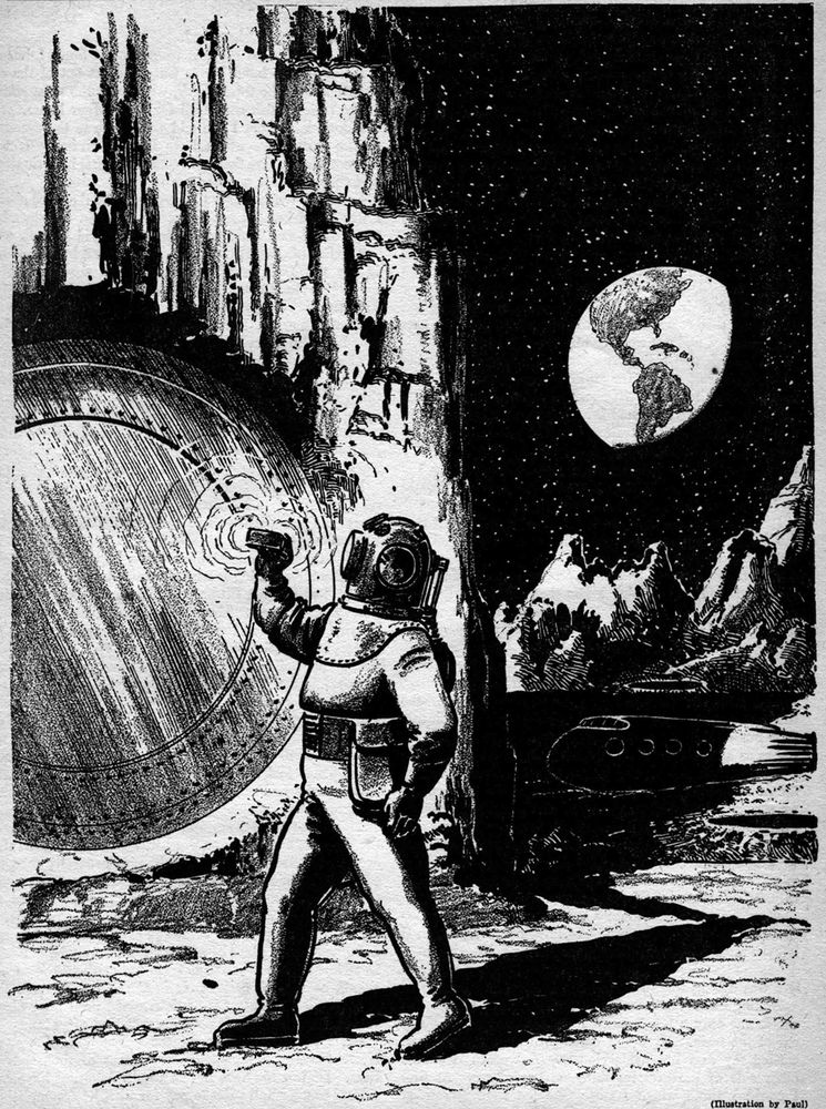 Наши продолжающиеся эксперименты в области радио и телевидения могут сыграть гораздо более важную роль в окончательной реализации успешных межпланетных путешествий, чем мы можем себе представить прямо сейчас. Но если мы на минутку задумаемся об этом, то возможности такой тесной взаимосвязи между радио, телевидением и ракетными полётами приобретут огромные масштабы, один из этапов такой взаимосвязи ярко описан в этом коротком научно-фантастическом произведении.