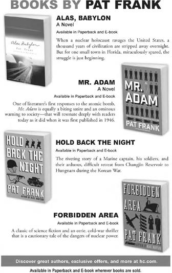 From the author of the classic Alas, Babylon comes this riveting story of a Marine captain and his soldiers and their arduous, difficult retreat from Changjin Reservoir to Hungnam during the Korean War—a stirring portrait of courage and sacrifice, now back in print. “These are not stragglers, sir. This is Dog Company…” In Pat Frank’s classic 1951 war novel, one-hundred-twenty-six soldiers commence their long, harrowing journey at Changjin Reservoir during the height of the Korean War, but few will survive the grueling fight and eventually reach Hungnam. Vividly bringing to life the bravery, daring, and turmoil a unit of soldiers endures, Hold Back the Night reveals their gripping...