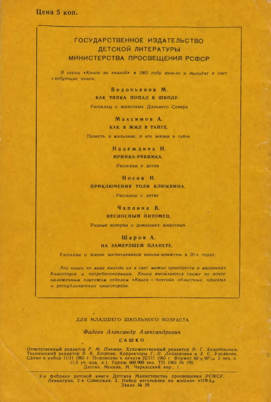 Публикуемый в этой книге рассказ «Сашко» является отрывком из романа А. А. Фадеева «Молодая гвардия». Рисунки И. М. Браславский. Ответственный редактор Р. М. Пикман. Художественный редактор Н. Г. Холодовская. Технический редактор В. К. Егорова. Корректоры Т. П. Лейзерович и З. С. Ульянова. Содержание: Александр Фадеев. Сашко (отрывок) — 1954 г. Для младшего школьного возраста