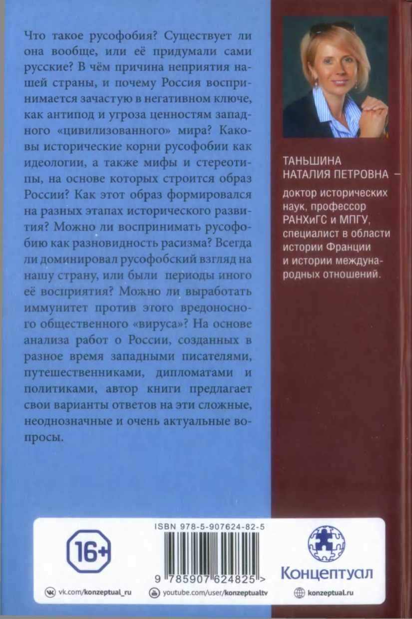 Что такое русофобия? Существует ли она вообще, или её придумали сами русские? В чём причина неприятия нашей страны, и почему Россия воспринимается зачастую в негативном ключе, как антипод и угроза ценностям западного «цивилизованного» мира? Каковы исторические корни русофобии как идеологии, а также мифы и стереотипы, на основе которых строится образ России? Как этот образ формировался на разных этапах исторического развития? Можно ли воспринимать русофобию как разновидность расизма? Всегда ли доминировал русофобский взгляд на нашу страну, или были периоды иного её восприятия? Можно ли выработать иммунитет против этого вредоносного общественного «вируса»? На основе анализа работ о России,...
