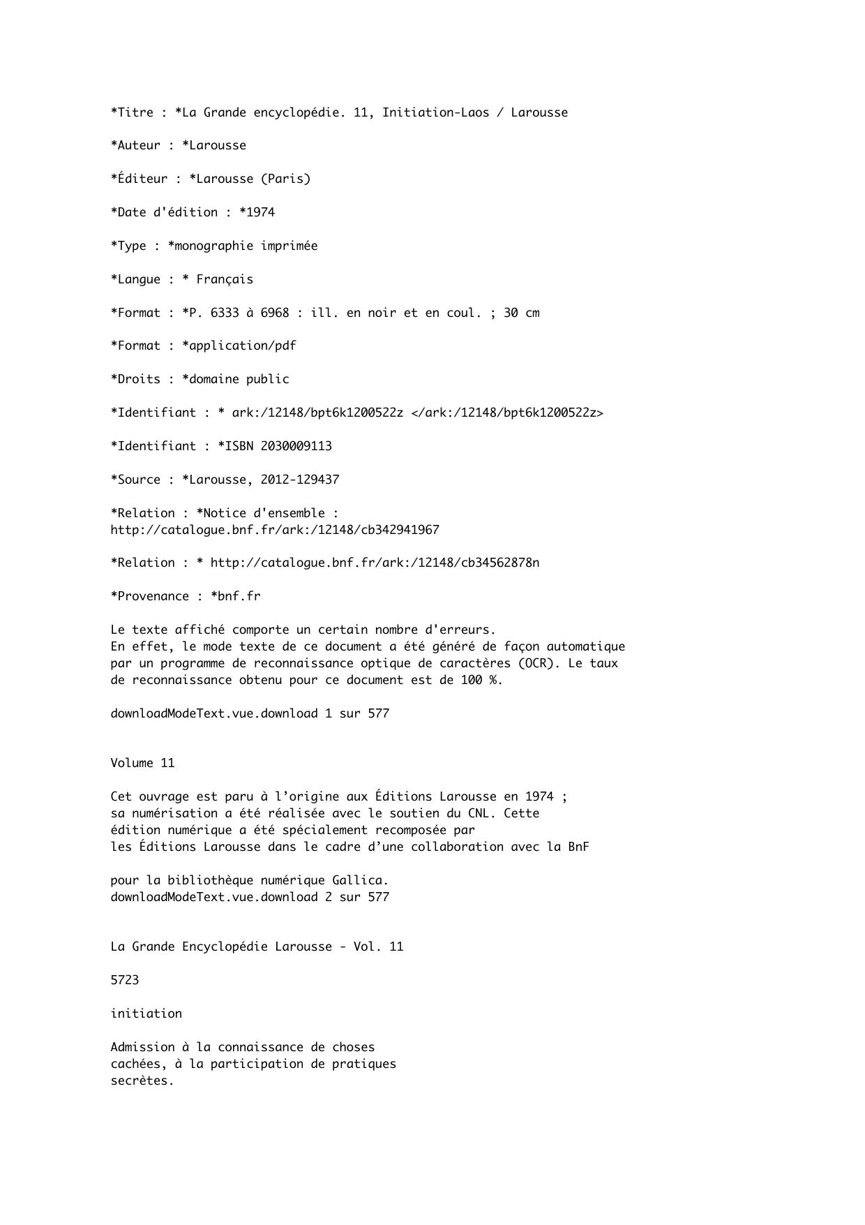 La Grande encyclopédie. 11, Initiation-Laos