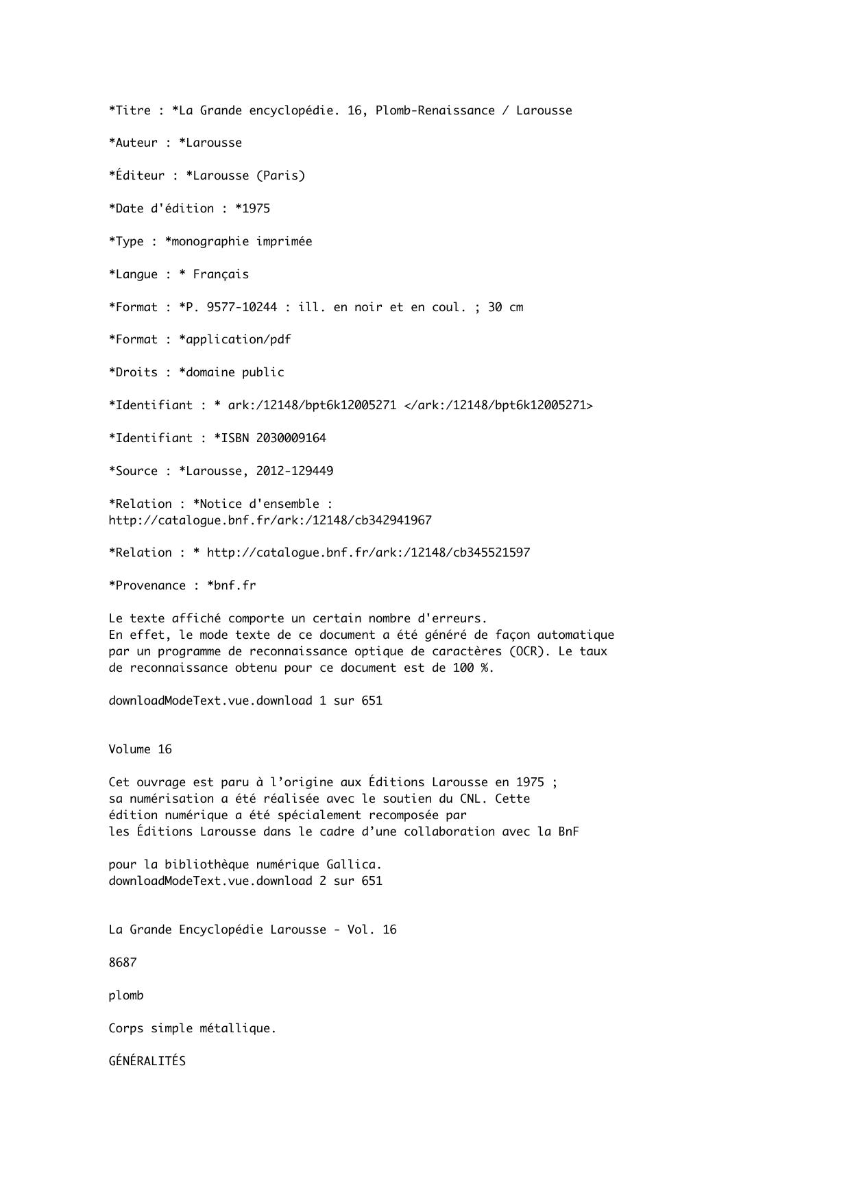 La Grande encyclopédie. 16, Plomb-Renaissance