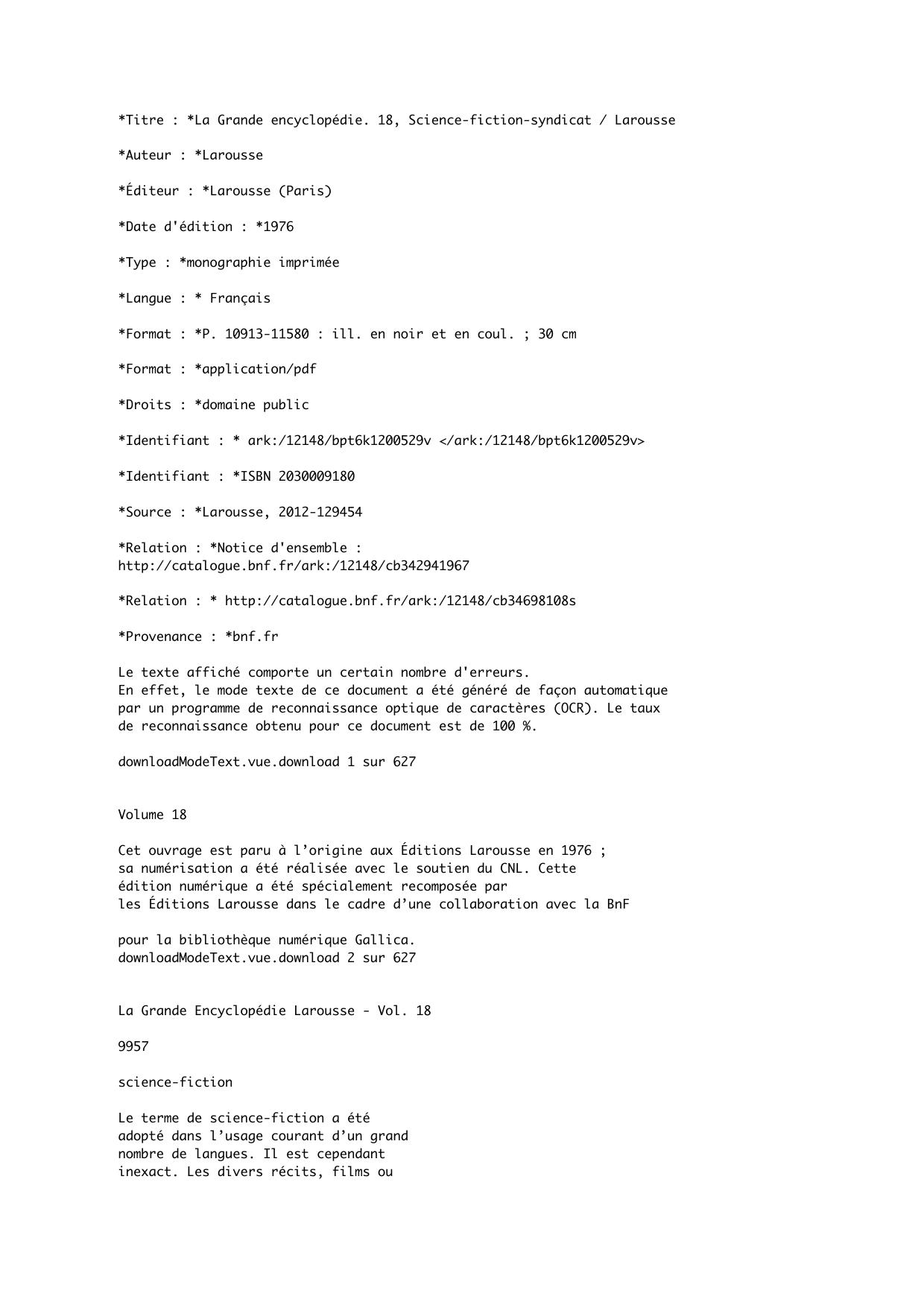 La Grande encyclopédie. 18, Science-fiction-syndicat