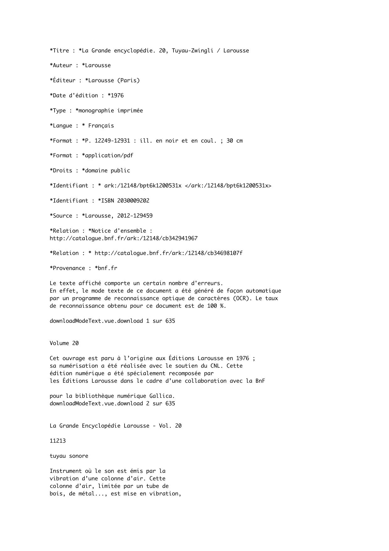 La Grande encyclopédie. 20, Tuyau-Zwingli