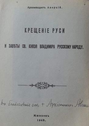 АВЕРКИЙ (Таушев А. П.) (1906-1976), русский церковный деятель, богослов, духовный писатель, архиепископ Сиракузский и Троицкий. Один из руководителей Русской Зарубежной Церкви. Настоятель Свято-Троицкого монастыря в Джорданвилле (США) в 1960-76. Автор книг «Провозвестник кары Божией русскому народу» (1964), «Современность в свете Слова Божия. Слова и речи» © Москва "Новая книга", 1996 Golden-Ship.ru 2014