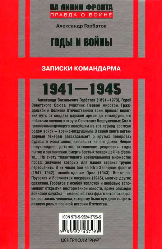 Александр Васильевич Горбатов (1891–1973), Герой Советского Союза, участник Первой мировой, Гражданской и Великой Отечественной войн, прошел нелегкий путь от солдата царской армии до командующего войсками военного округа Советских Вооруженных Сил и главнокомандующего новейшим на тот период времени родом войск — военно-воздушным. В своей книге легендарный генерал рассказывает о крутых поворотах судьбы и испытаниях, выпавших на его долю. Нищее полуголодное детство, сталинские репрессии, годы пыток и заключения, смерть боевых товарищей на фронте… На счету талантливого военачальника множество побед, значение которых для нашей страны трудно переоценить. В их числе бои на Юго-Западном фронте...