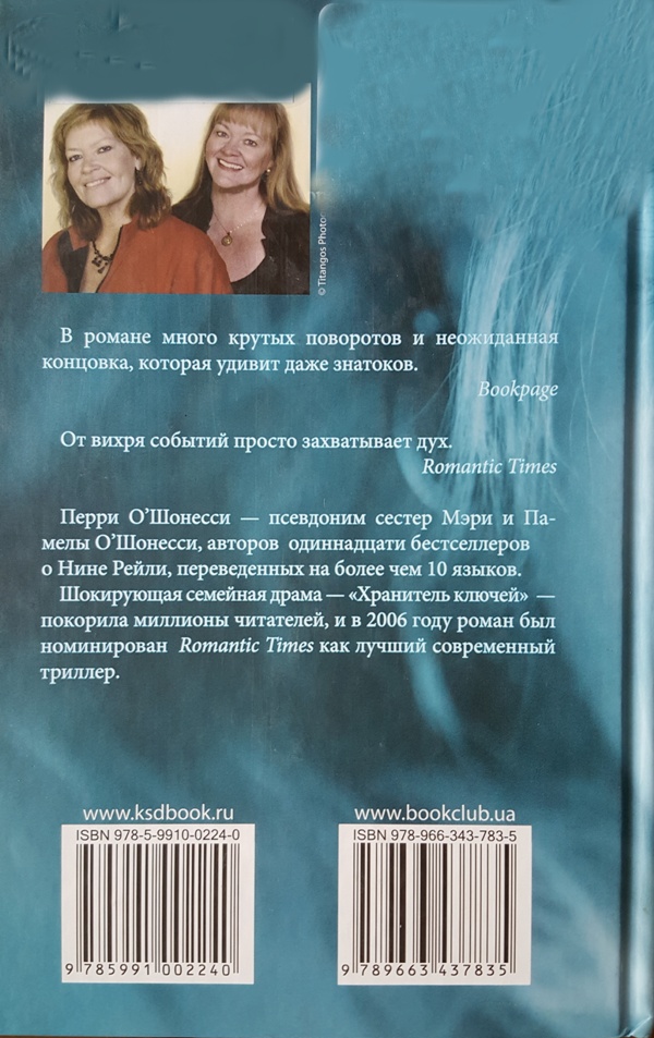 Изключително четивна, вероятно най-добрата книга на Пери О’Шонеси. Обръщате страница след страница, които ви държат будни цяла нощ. Друуд Ривю ъф Мистери Известен пластичен хирург е убит с древен японски меч от собствената му оръжейна колекция. По същото време при самолетна катастрофа загива единственият му син. За смъртта на бащата е обвинена 16-годишната му племенница Ники. Смъртта на сина изглежда нещастен случай. От миналото изплува сянката на отдавна изчезналия баща на Ники. Адвокат Нина Рейли не се бои и от най-заплетените случаи. Но този наистина изглежда неразрешим — целият оплетен в лъжи, тайни и премълчавания. А в съдебната зала Нина губи битка след битка. „Нина Рейли е...