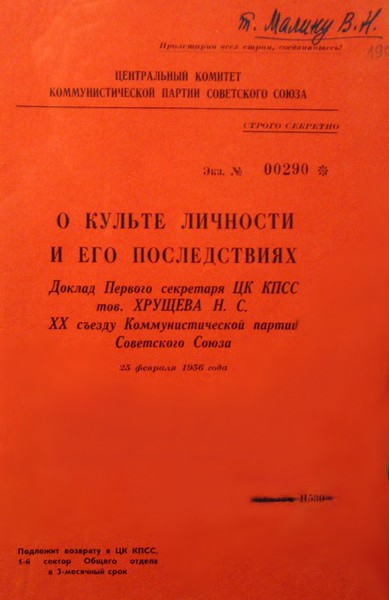 Доклад «О культе личности и его последствиях» (также известен как «секретный доклад Хрущёва на XX съезде КПСС») был зачитан Первым секретарём Президиума ЦК КПСС Н. С. Хрущёвым на закрытом заседании XX съезда КПСС, состоявшемся 25 февраля 1956 года. Доклад был посвящён осуждению культа личности И. В. Сталина, массовому террору и преступлениям второй половины 1930-х — начала 1950-х, вина за которые возлагалась на Сталина, а также проблеме реабилитации партийных и военных деятелей, репрессированных при Сталине.