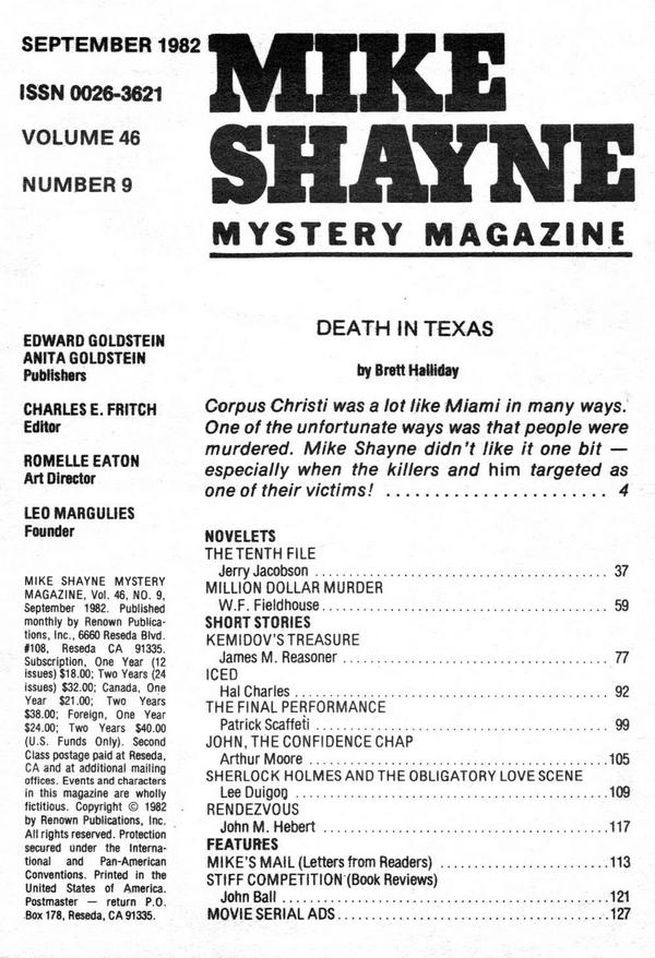 Dear Reader: Travel is broadening, we are told, but travel can be dangerous as well. And half of the stories in this issue have a foreign setting as backdrop for chilling tales of intrigue and murder. London’s airport is the scene for a tense, dramatic encounter in William Bankier’s “The Dream of Hopeless White,” while just across the Irish Sea some unsavory characters try to thwart another man’s dream in “All You Need Is Luck” by Jean Darling. In “A Grave on the Indragiri” by Alvin S. Fick, a private detective’s investigation of a man’s mysterious death leads him first to a Sumatra rubber plantation and finally to a quiet garden in Holland. “Three Weeks in a Spanish Town” prove to be a...