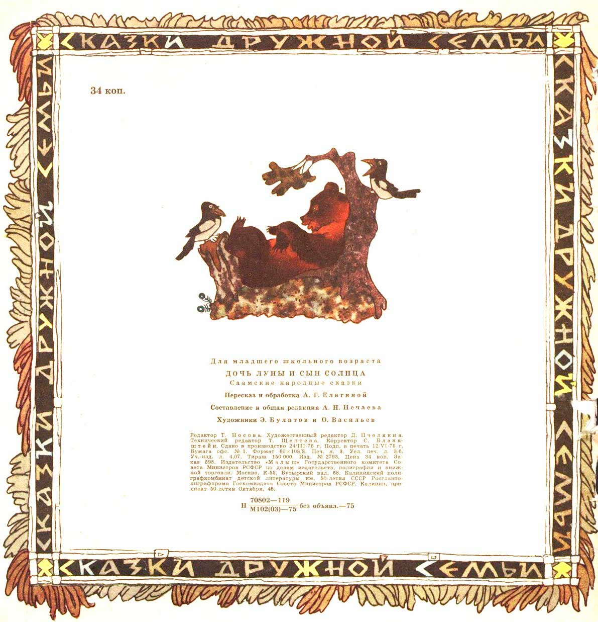 ⠀⠀ ⠀⠀ ⠀⠀ Саамские народные сказки. Пересказ и обработка А. Г. Елагиной. Художники Э. Булатов и О. Васильев Для младшего школьного возраста. ⠀⠀ ⠀⠀ ⠀⠀