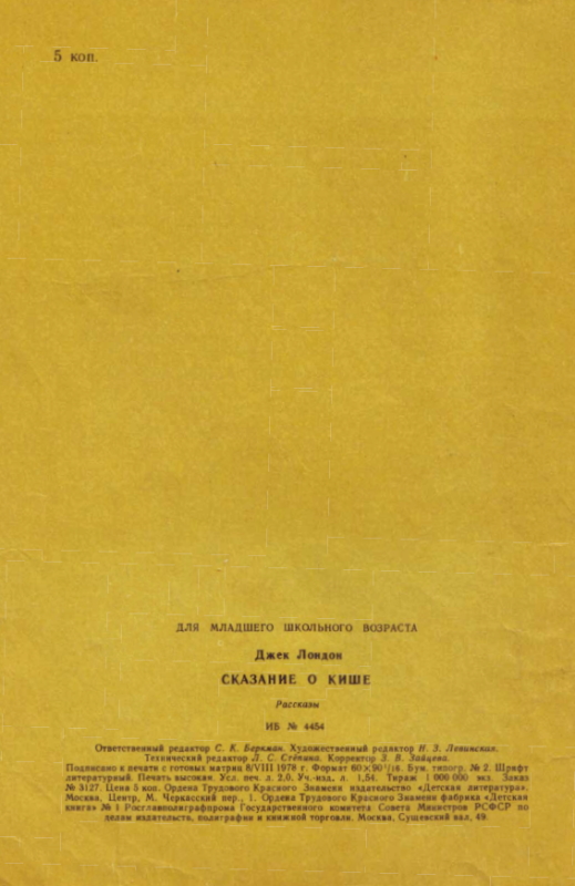 Джек Лондон (1876–1916), выдающийся американский писатель, родился в небогатой семье в городе Сан-Франциско и с ранних лет вынужден был сам зарабатывать себе на существование. Кончив школу и добывая средства любым трудом (вплоть до работы в прачечной), он поступил в Калифорнийский университет. В 1896 году, когда на Аляске были открыты золотые россыпи, он отправился с партией золотоискателей в Клондайк. Вот из этого сурового края он и вынес свое «Сказание О Кише», проникнутое сочувствием и уважением к зскимосам, жившим в те времена в первобытных условиях и добывавшим себе пропитание охотой и рыболовством. Второй рассказ, вошедший в эту книгу, — «На берегах Сакраменто», рассказывает о...