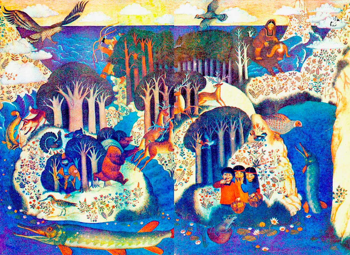 Сказки народов тайги и тундры. Пересказали В. Глоцер и Г. Снегирев. Рисовал Г. Спирин.