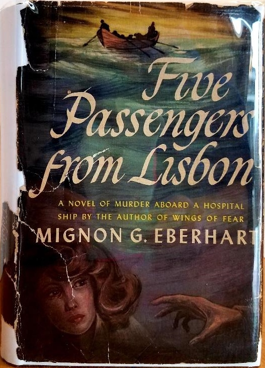 «NIGHT… FOG… AND MURDER!! It had begun as a voyage to freedom, a dream come true. But now every passenger on the ship was stalked by deadly fear, every shadow had become infused with dread. One man had died, a knife buried deep in his back. Another had met an even more gruesome end. That was bad, but what was worse – the murderer was readying to strike again…» Five passengers and three crewmen survive a sinking Portugese cargo ship via a lifeboat, but when they're picked up by a U.S. hospital ship, the Portugese mate is found murdered. Against a backdrop of Portugal being a haven for espionage with undertones of Nazi and Resistance alliances, Eberhart...