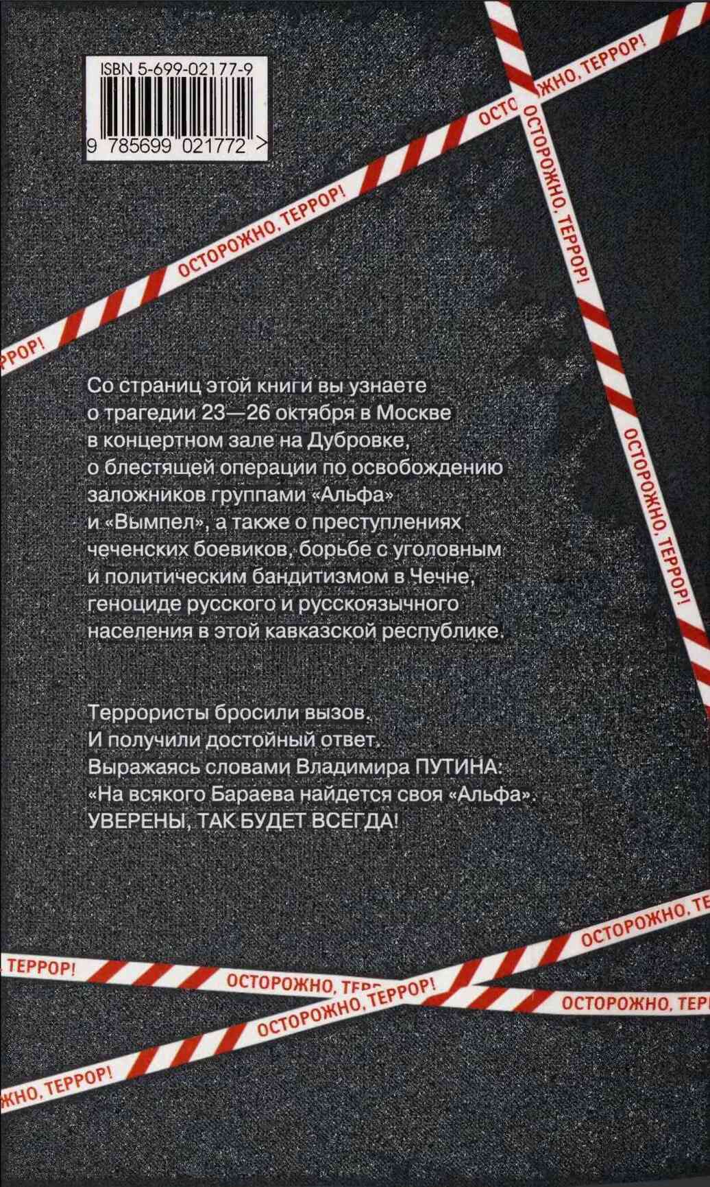 В книге «Битва за «Норд-Ост» с привлечением большого фактического материала рассказывается о недавней московской трагедии — захвате заложников в Театральном центре на Дубровке. Отдельные страницы книги посвящены этапам становления и боевым операциям подразделений Центра спецназначения ФСБ — легендарным группам «Альфа» и «Вымпел». Читатель узнает также об истории чеченского терроризма и борьбы с ним, о трагедии русского и русскоязычного населения Чечни.
