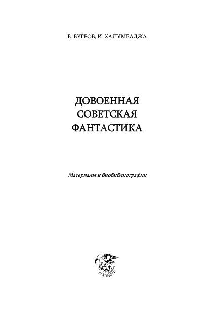 Аннотированная библиография довоенной советской фантастики, составленная писателями-фантастами, исследователями фантастической литературы В. Бугровым (1938-1994) и И. Халымбаджей (1933-1999), впервые познакомила читателей и литературоведов со множеством неизвестных или малоизвестных имен и произведений и до сих пор не утратила своей ценности.