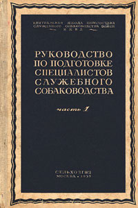 ЦЕНТРАЛЬНАЯ ШКОЛА КОМСОСТАВА СЛУЖЕБНОГО СОБАКОВОДСТВА ВОЙСК НКВД СССР Проф. Л. А. Андреев, В. В. Васильев, М. Ф. Васильев, П. А. Емельянов, А. П. Мазовер, Н. Ф. Русанов, П. П. Смирнов Руководство по подготовке специалистов служебного собаководства, часть I Под общей редакцией Проф. Л. А. Андреева. Государственное Издательство Колхозной и Совхозной Литературы «Сельхозгиз» - 1939 - Москва ОТ АВТОРОВ Настоящее руководство в своей основе рассчитано на руководящий состав специалистов служебного собаководства. Следует отметить исключительное внимание, заботу и помощь, которые были оказаны коллективу молодых авторов во время написания этого руководства со стороны проф. Андреева...