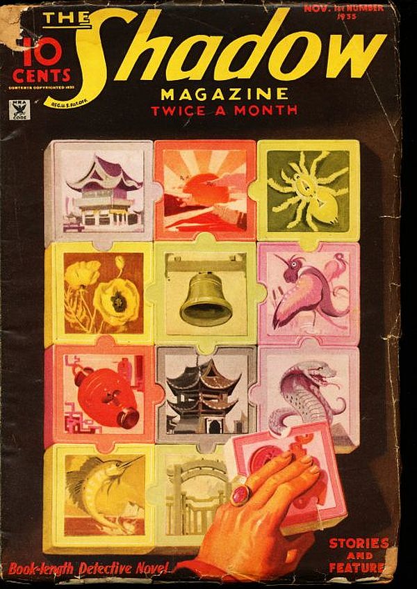 THE RIBBON CLUES was originally published in the October 1, 1935 issue of The Shadow Magazine. In this story, The Shadow gets to visit Chinatown, travel through the twisty underground passages, meet with Yat Soon, arbiter of Chinatown, and encounter hoards of Oriental fighters. Now, you wouldn't have guessed all that from the story title, would you? Well, it's quite a story!