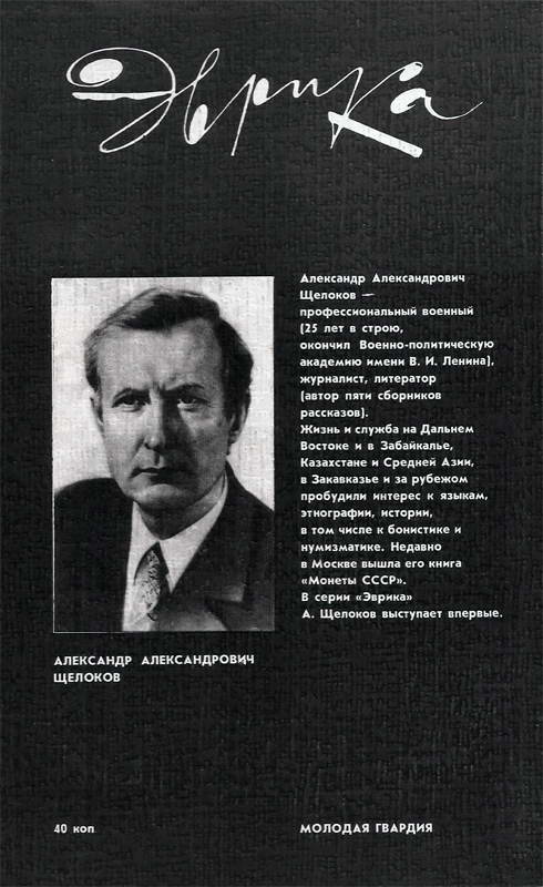 Щелоков А. А. Монеты СССР: Каталог.—М.: Финансы и статистика, 1986. —190 с. Излагаются основные принципы определения разновидностей монет советского чекана, установления их редкости, оценки состояния монет. Приводятся иллюстрации всех монет советского чекана с изображением деталей, образующих разновидности. Впервые дается полное описание юбилейных и памятных монет. Читатель найдет немало интересных сведений о людях, событиях и объектах, ставших сюжетами оформления советских монет. Для читателей, интересующихся историей денежного обращения в СССР, музейных работников, нумизматов.