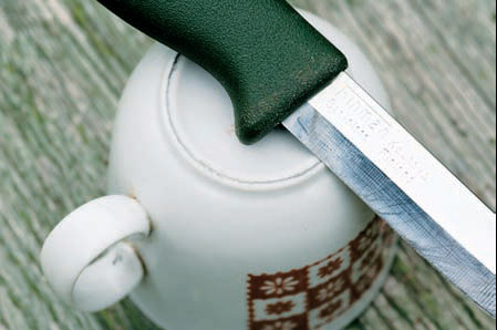 Статья опубликована в журнале "Прорез" №3, 2005 (№24). Сюжет совсем не фантастический. В полевых условиях работы для ножа особенно много. Нож затупился, а точилки нет. Что делать?