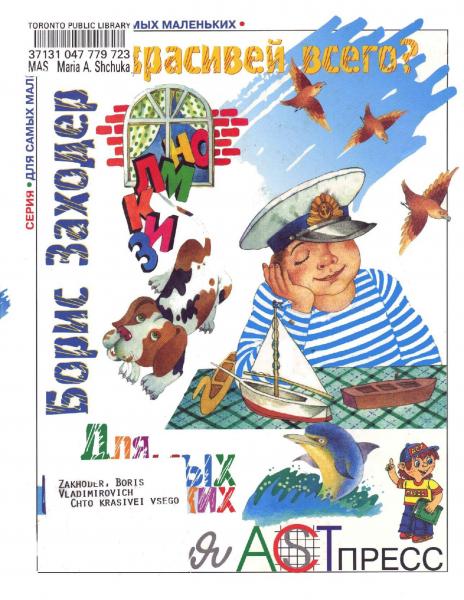 Стихи и сказки. Иллюстрация на обложке и внутренние иллюстрации А.Ю. Остроменцкого. [collapse collapsed title=Оглавление] Что красивей всего? Борис Заходер. Песенка-Азбука (стихотворение), стр. 5-6 Борис Заходер. Кискино горе (стихотворение), стр. 6 Борис Заходер. Дождик (стихотворение), стр. 6-7 Строители Борис Заходер. Слесарь (стихотворение), стр. 7 Борис Заходер. Сапожник (стихотворение), стр. 7 Борис Заходер. Шофёр (стихотворение), стр. 8 Борис Заходер. Повара (стихотворение), стр. 8 Борис Заходер. Переплётчица (стихотворение), стр. 9 Борис Заходер. Монтёр (стихотворение),...