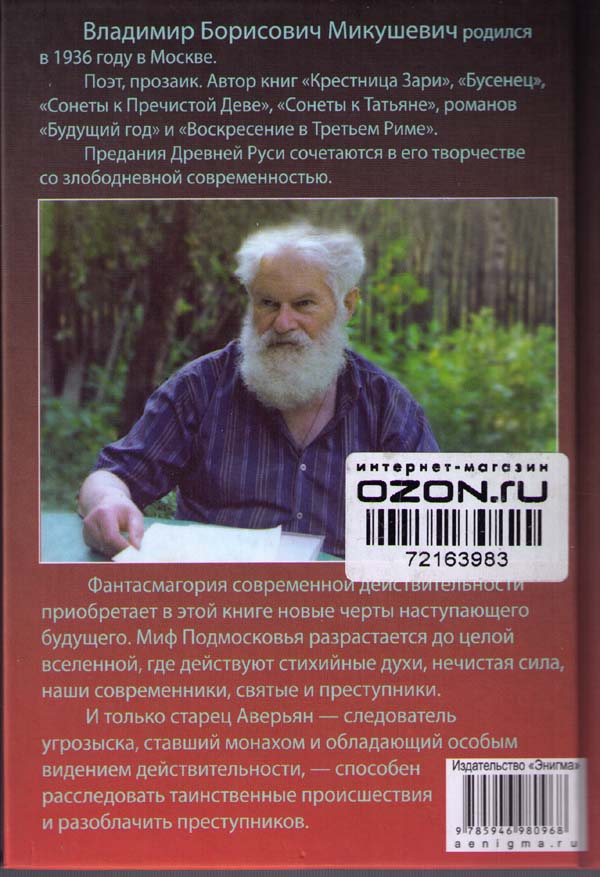 В сборнике новелл поэта и прозаика В.Б.Микушевича предания Древней Руси сочетаются со злободневной современностью, и фантасмагория современной действительности приобретает новые черты наступающего будущего. Странные происшествия, в которых действуют стихийные духи, нечистая сила, наши современники, святые и преступники, расследует старец Аверьян — следователь угрозыска, ставший монахом. Только он, обладающий особым видением действительности, способен разоблачить преступников.