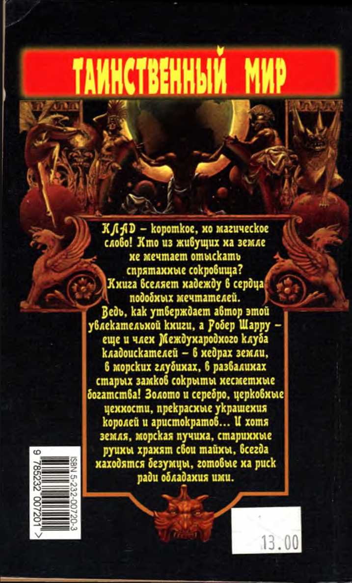 Настоящий сборник содержит в себе описания истории открытия разных кладов и сокровищ, сокрытых до времени зарытыми в земле, замурованными в стенах и спрятанных в тайниках, о которых сведения до нашего времени не дошли и унесены их хозяевами с собой в иные миры. Надеюсь, что представленные книги будут интересны уму пытливого читателя. Содержание: 1.Александр Григорьевич Косарев: В поисках сокровищ Бонапарта. Русские клады французского императора. 2.Александр Григорьевич Косарев: Загадки старинных кладов. 3.Александр Косарев: Знаменитые клады России. 4.Андрей Юрьевич Низовский: Зачарованные клады России. 5.Робер Шарру: Сокровища мира - зарытые, замурованные,...