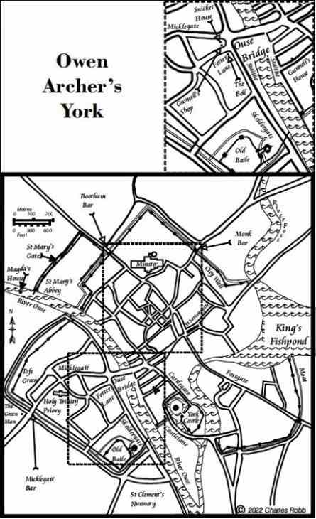 The Owen Archer Series #14 October, 1376. Owen Archer is summoned by sheriff Sir Ralph Hastings regarding a stripped and bloodied body discovered on the road north to York. Could it be connected to an attack on a carter and his labourers who were transporting stone destined for St Clement's Priory? The carter fled, but his men stayed to fight and are now missing. Is the victim one of them? At first Owen believes the catalyst for murder and menace in York is the arrival of the political pariah William Wykeham, Bishop of Winchester. But he soon suspects that a formidable and skillful adversary from his past has arrived in the city, thrusting him and his family into grave danger, and...