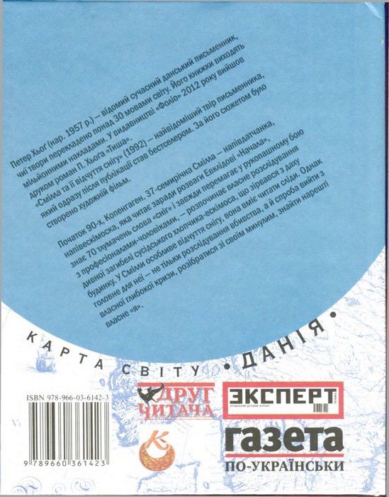 Петер Хьоґ (нар. 1957 р.) — відомий сучасний данський письменник, чиї твори перекладено понад 30 мовами. Його книжки виходять мільйонними накладами. У видавництві «Фоліо» 2012 року побачив світ роман П. Хьоґа «Тиша». «Смілла та її відчуття снігу» (1992) — найвідоміший твір письменника, який одразу після публікації став бестселером. За його сюжетом було створено художній фільм. Початок 90-х, Копенгаген. 37-річна Смілла — напівдатчанка, напівескімоска, яка читає заради розваги Евклідові «Начала», знає 70 тлумачень слова «сніг» і завжди перемагає у рукопашному бою з професіоналами-чоловіками, — розпочинає власне розслідування дивної загибелі сусідського хлопчика-ескімоса, що зірвався з...