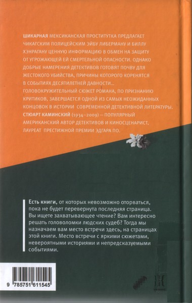 Шикарная мексиканская проститутка предлагает чикагским полицейским Эйбу Либерману и Биллу Хэнрагану ценную информацию в обмен на защиту от угрожающей ей смертельной опасности. Однако добрые намерения детективов готовят почву для жестокого убийства, причины которого коренятся в событиях десятилетней давности… С риском для жизни Либерману все же удается найти убийцу и — на самых последних страницах романа — до конца распутать эту тайну. Головокружительный сюжет романа, по признанию критиков, завершается одной из самых неожиданных концовок в истории современной детективной литературы. Есть книги, от которых невозможно оторваться, пока не будет перевернута последняя страница. Вы ищете...