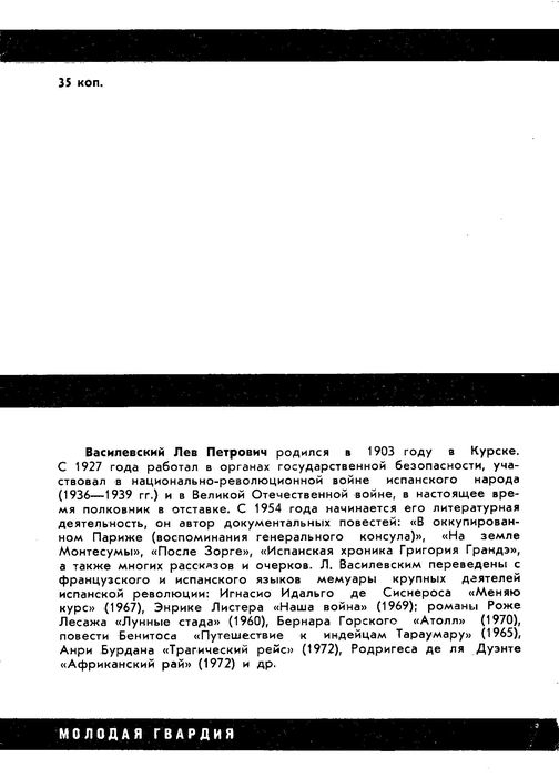 Переиздание книги об известном советском контрразведчике Г.Сыроежкине, участнике революционных боев в Испании в 1936-1939 годах. Страницы героической жизни Сыроежкина воссозданы его товарищем по событиям в Испании.
